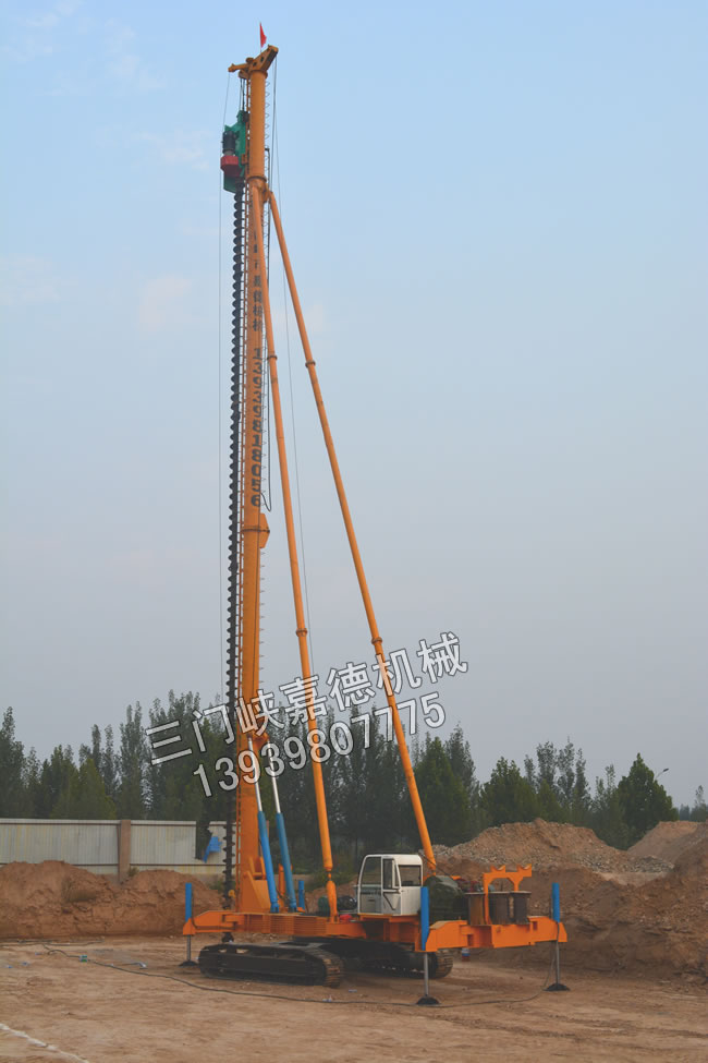 該型號(hào)系列鉆機(jī)是采用履帶式行走,電控升降、長(zhǎng)螺旋鉆進(jìn)的新型樁結(jié)構(gòu)基礎(chǔ)施工及。機(jī)械驅(qū)動(dòng)地盤可實(shí)現(xiàn)360°全回轉(zhuǎn),就位、移動(dòng)、調(diào)平等動(dòng)作迅速準(zhǔn)確,自行走落折疊樁架,整機(jī)拖掛運(yùn)輸;采用兩個(gè)電控卷?yè)P(yáng),即可進(jìn)行鉆孔作業(yè)也可自行起吊鋼筋籠,進(jìn)行灌注作業(yè)。動(dòng)力頭輸出為中空式,除了可進(jìn)行一般的長(zhǎng)螺旋干法施工外,還可以進(jìn)行深層攪拌法施工。 |